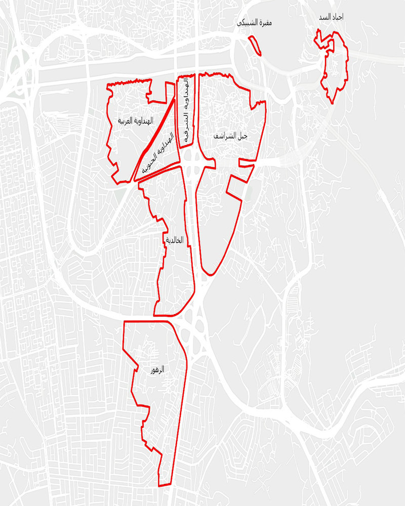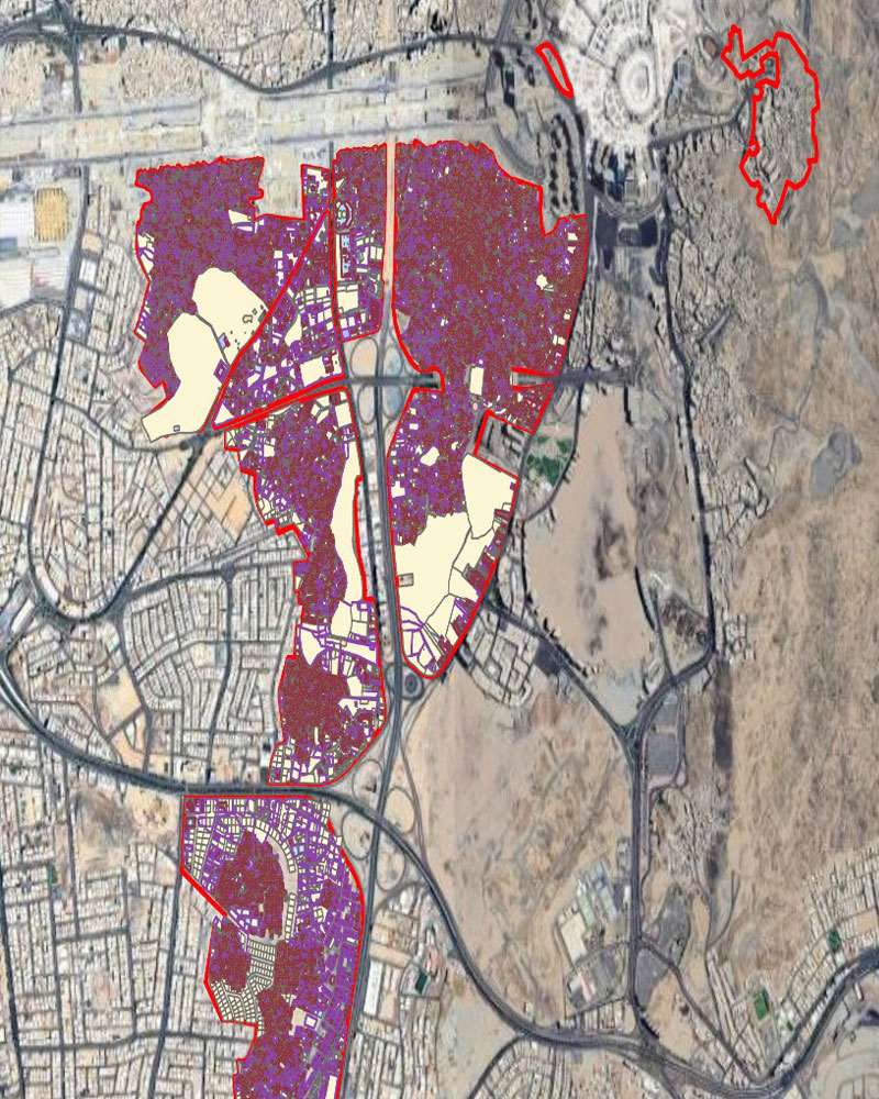 - Detailed surveying of the targeted properties within the boundaries of the regions such as (Jabal Al-Sharashif – Al-Zahour – Al-Khalidiya – Southern Al-Hindawiya – Eastern Al-Hindawiya – Western Al-Hindawiya – Ajyad Al-Sadd – Al-Shabiki Cemetery)