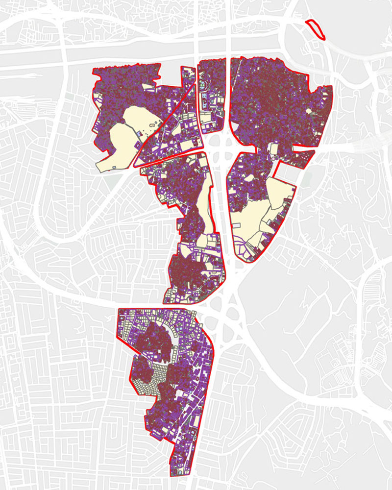 The project tasks are based on detailed surveying and urban elevations of development areas within Makkah Al-Mukarramah according to the understanding of the standards agreed upon with the Royal Commission for Makkah City and the Holy Sites, collecting the required data, and creating databases related to the project according to the structure approved by the Commission, while receiving requests from the departments directing the work, collecting files and data related to the targeted project properties, and issuing all necessary and agreed-upon outputs from area inventory minutes and contents of the targeted properties, issuing databases for each project separately, including all agreed-upon attachments, and producing all technical and surveying reports related to the project. The following is a review of some of the projects that have been worked on, which are:
